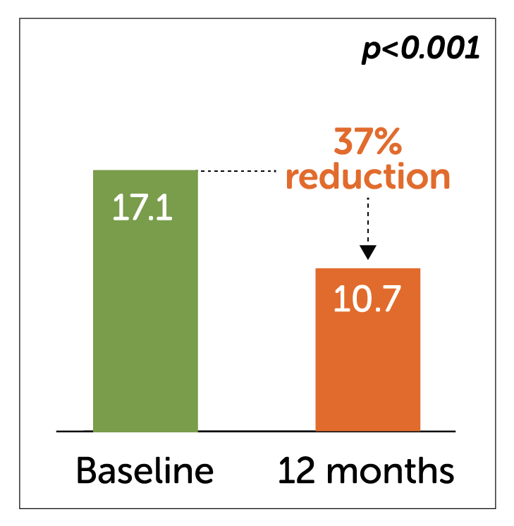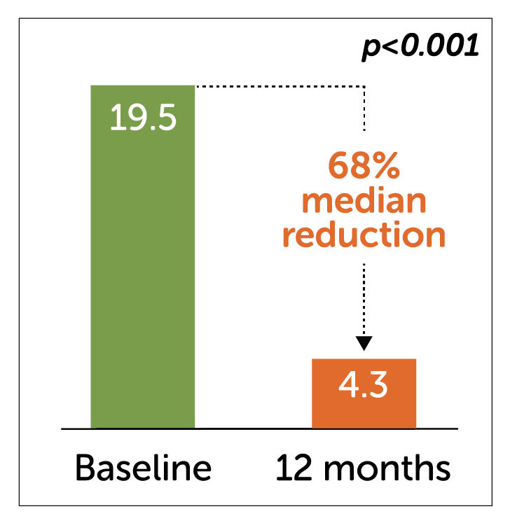 - Die Enterra Therapie reduzierte weitere wichtige Endpunkte wie die Gesamt-Symptom-Scores und die Anzahl der Krankenhaustage nach 12 Monaten signifikant.
