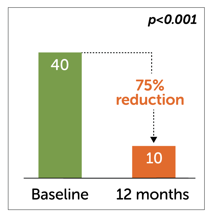 - In einer Studie mit 55 Patienten mit diabetischer Gastroparese reduzierte die Enterra Therapie die mediane WVF beim Follow-up nach 12 Monaten signifikant.